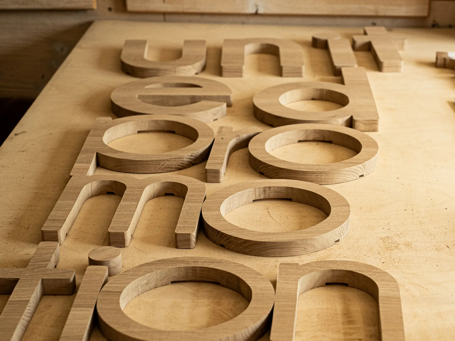 Wir begleiten dich von der ersten Skizze bis zum fertigen Logo mit klaren Abläufen, hochwertigen Materialien und echter Handarbeit. Dabei berücksichtigen wir nicht nur dein Corporate Design, sondern auch den Raum, in dem dein Logo wirken soll.