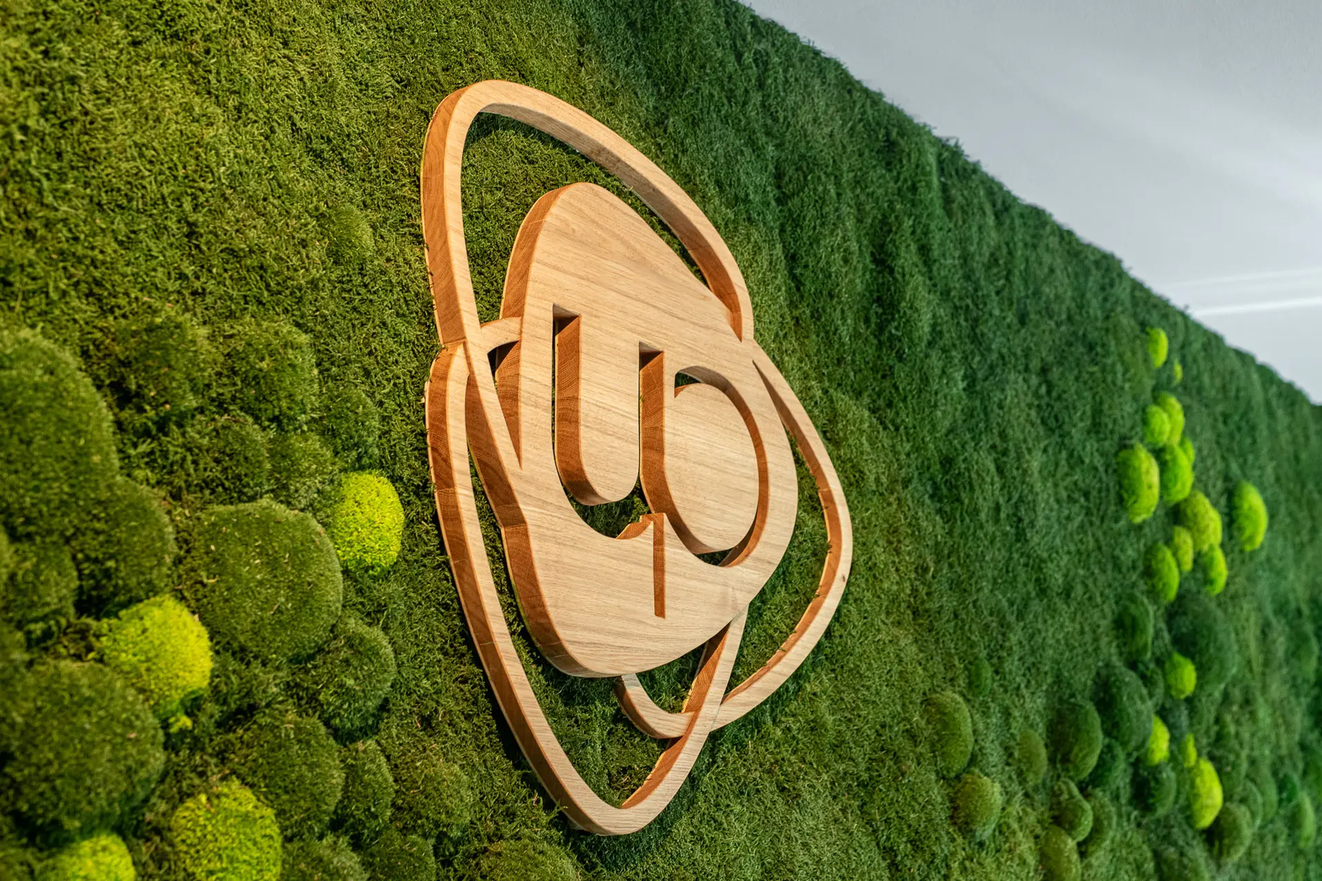 Durch den Einsatz natürlicher Materialien konnten Markenidentität und akustische Anforderungen des Konferenzraums erfolgreich miteinander verbunden werden. Die Mooswand verbessert die Raumakustik, wertet den Raum visuell auf und schafft eine nachhaltige, hochwertige Atmosphäre.